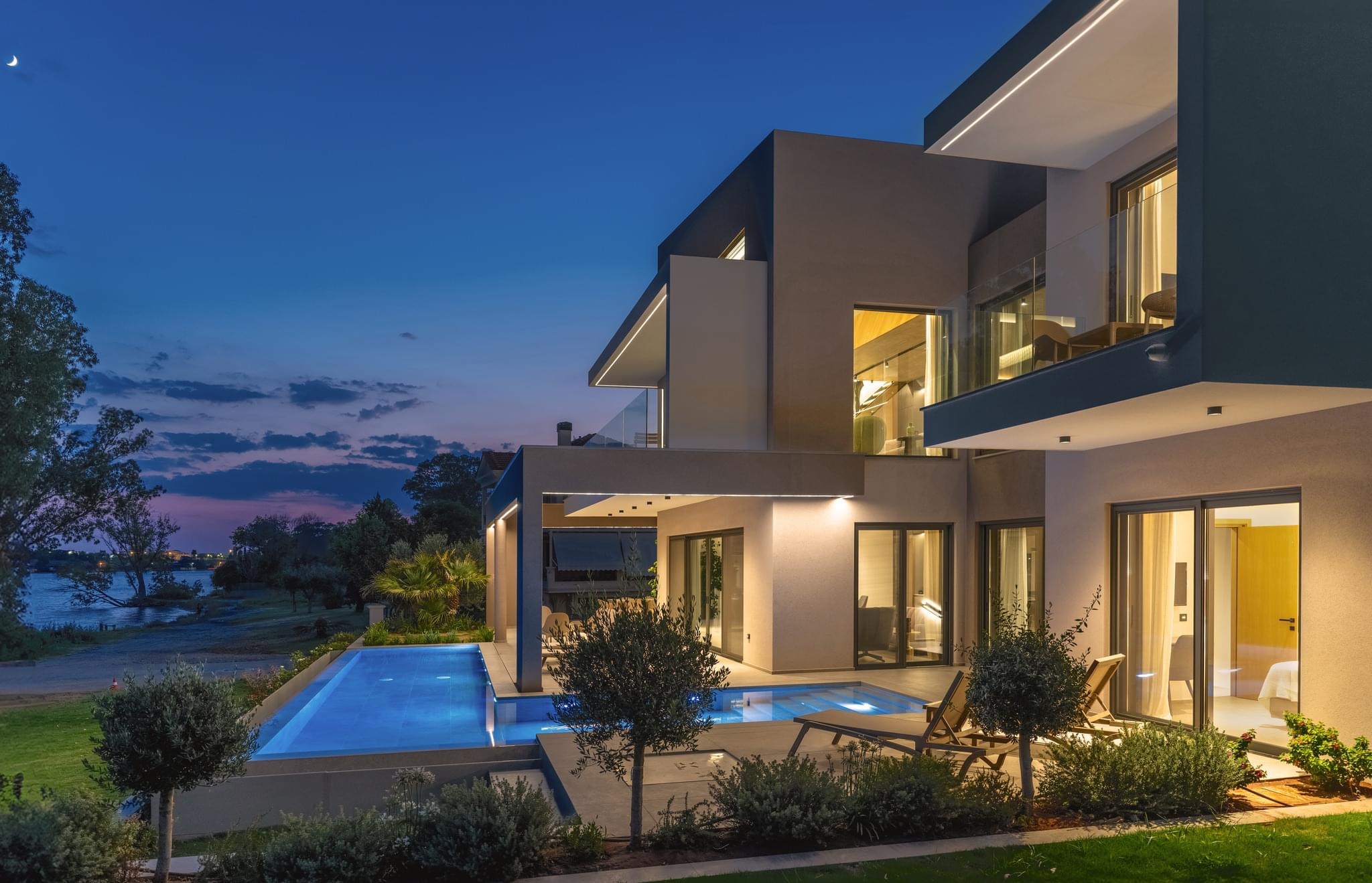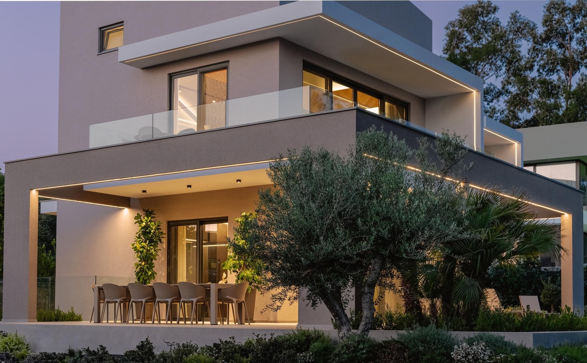 Η κατοικία σχεδιάστηκε σε οικόπεδο, το οποίο βρίσκεται στον οικισμό Ψαθάκι στη Πρέβεζα, έχει θέα στον Αμβρακικό κόλπο και στο παραλιακό μέτωπο της πόλης. Το κτίριο αποτελείται από τρεις καθαρούς όγκους, οι οποίοι αρθρώνονται γύρω από ένα κεντρικό αίθριο.